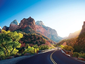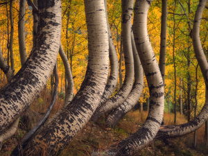 The Hills, rays of the Sun, birch, Mountains, autumn