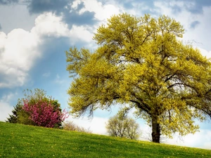 trees, summer, ##, tle, village, Bench