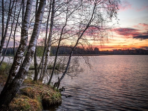 viewes, Great Sunsets, snow, trees, winter, Spruces, traces