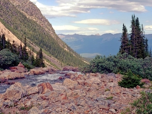 viewes, Mountains, slopes, traces, snow, trees