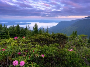 trees, viewes, day, snow, sunny, forest, autumn, Pond - car