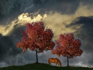 trees, viewes, Sky, Palms, Umbrella, sea, Beaches, deck chair