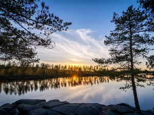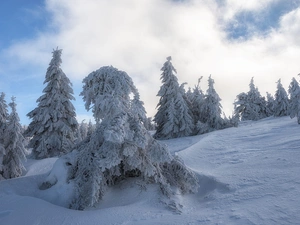 trees, Meadow, Blue