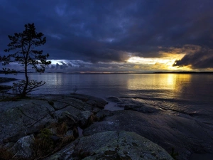 viewes, Pond - car, Great Sunsets, autumn, Boat, trees