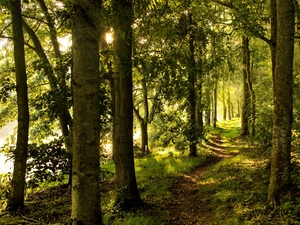 trees, field, clouds