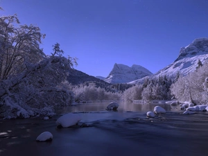 Dolomites Mountains, Antorno Lake, Massif Tre Cime di Lavaredo, forest, Province of Belluno, Italy, viewes, bridges, trees