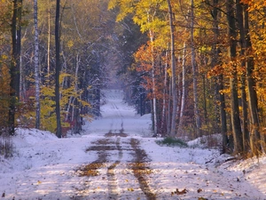 viewes, Way, fallen, trees, forest, autumn, Leaf