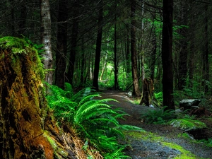 birch-tree, fern, trees, viewes, forest