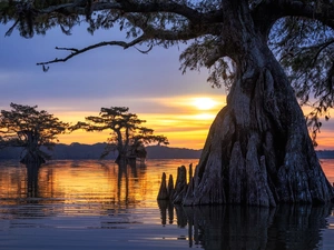 trees, viewes, The Hills, cypresses, clouds, Tuscany, Italy, Great Sunsets
