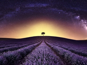 viewes, Fog, Hill, trees, mountains, pine, moon