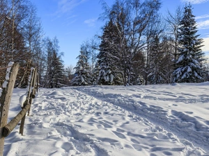 viewes, snow, Hill, trees, winter, Spruces, traces