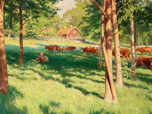 viewes, Fog, Houses, trees, Mountains, autumn, roads