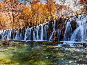 viewes, forest, Leaf, trees, autumn, Path, fern
