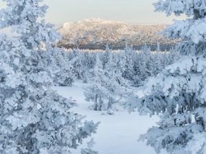 trees, viewes, deer, channel, Deer, Peder Monsted, painting, River