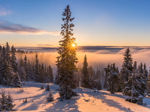 moon, viewes, birds, trees