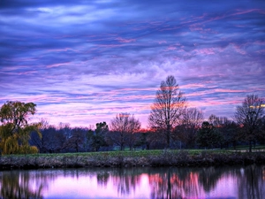 River, viewes, reflection, trees