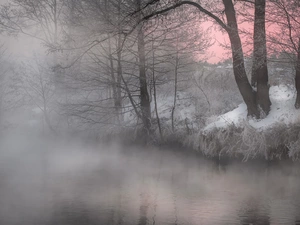 viewes, forest, snow, trees, winter, Way, traces