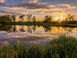 trees, Way, viewes, Przebijające, luminosity, autumn, sun, flash, ligh