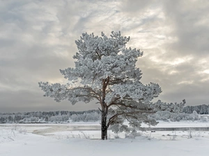 trees, winter, Mountains, rays of the Sun, viewes, snow