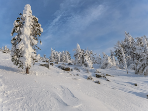 trees, rays of the Sun, Pond - car, rushes, viewes, Mountains