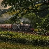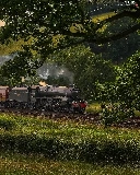 trees, viewes, locomotive, Mountains, Train