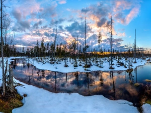 viewes, forest, Way, trees, Mountains, Stones, autumn