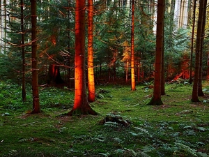 viewes, papavers, west, trees, Meadow, clouds, sun