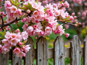 Light pink, Fruit Tree, leaves, Fance, Flowers, Twigs