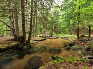 rocks, Coast, sea, trees, Oregon, The United States, grass, Bird, viewes