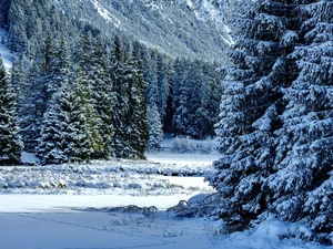 The United States, winter, The Hills, snow, viewes, Utah State, Zion National Park, trees