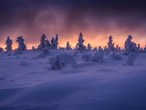trees, Trentino-Alto Adige, Seiser Alm Meadow, Valley, winter, Italy, Dolomites, cote, viewes, Sassolungo Mountains