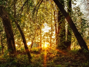 trees, viewes, autumn, forest, Way