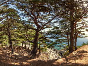 lake, reflection, clouds, trees, woods, Mountains, Snowy, viewes