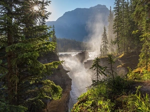 bridge, Snowy, clouds, trees, House, River, winter, viewes