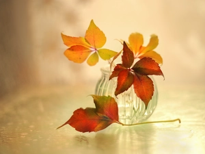 Leaf, trees, Coloured, viewes, forest, Fog, autumn