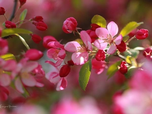 frosted, trees, Fog, viewes, Meadow, grass, Sunrise