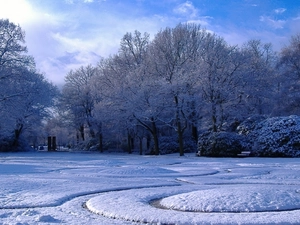 Mountains, trees, Houses, viewes, River, woods, Spring