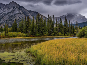 winter, trees, lake, viewes, Snowy, snow, Fog