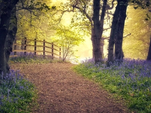 fallen, trees, Leaf, viewes, forest, Yellowed, autumn