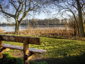 Bench, trees, Leaf, viewes, Park, Path, autumn
