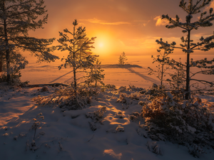 Pink, Autumn, trees, viewes, Twigs, leaves