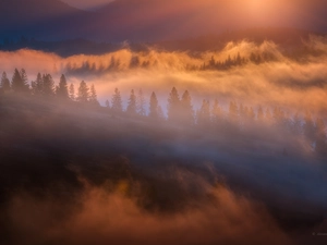 River flow, mossy, trees, Stones, autumn, forest, viewes