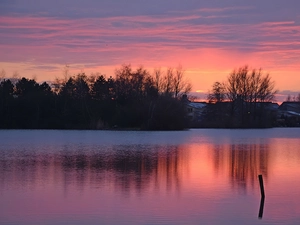 wood, Houses, Mountains, trees, Fog, country, autumn, viewes