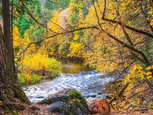 viewes, autumn, rays of the Sun, Plants, Leaf, trees