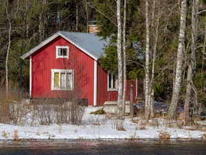 viewes, rocks, Republic of Karelia, trees, Lake Ladoga, reflection, Russia