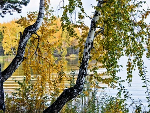 trees, viewes, River, waterfall, forest