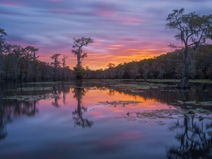trees, viewes, River, Snowy, winter