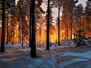 trees, viewes, snow, Bush, winter