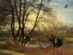 viewes, trees, forest, sun, luminosity, Fog, sun, flash, ligh