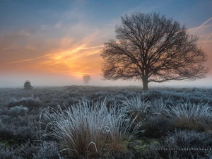 viewes, lake, morning, rays of the Sun, Bush, trees